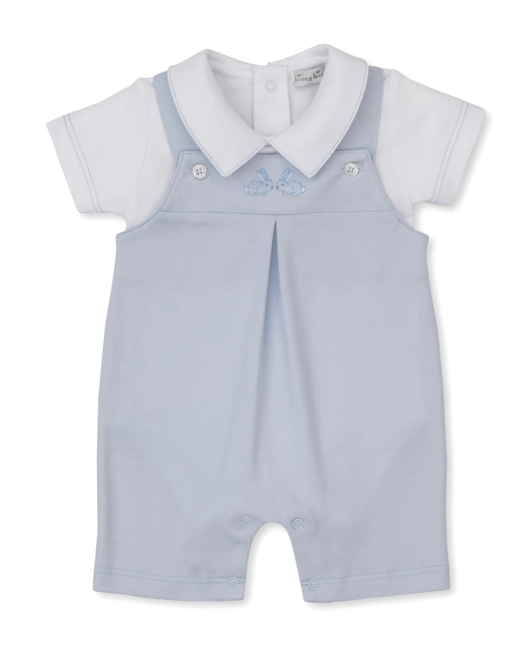 Springtime Bunny Fun Short Overall Set | Light Blue