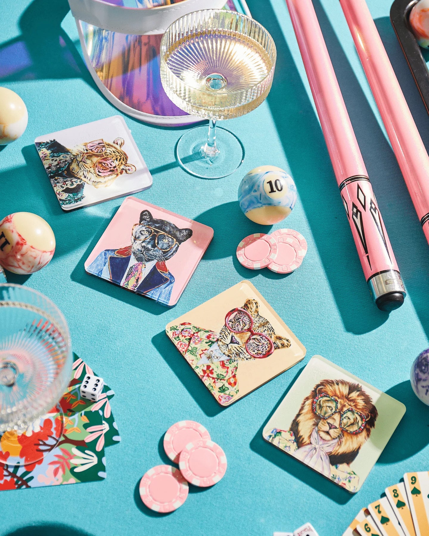 Introducing our latest Heather Perry collaboration, the Big Cats coasters! These acrylic charmers feature fashionable cats, dripping in designer garb – perfect for adding a wild touch to your home or workspace. Time to roar with style!