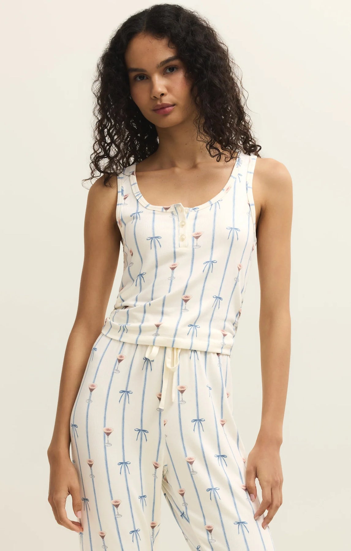This silky jersey tank has a smooth, breathable texture that feels cool and cozy at once. The scoop neckline and fitted shape make it a favorite for unwinding, movie marathons, or lazy weekend mornings.
