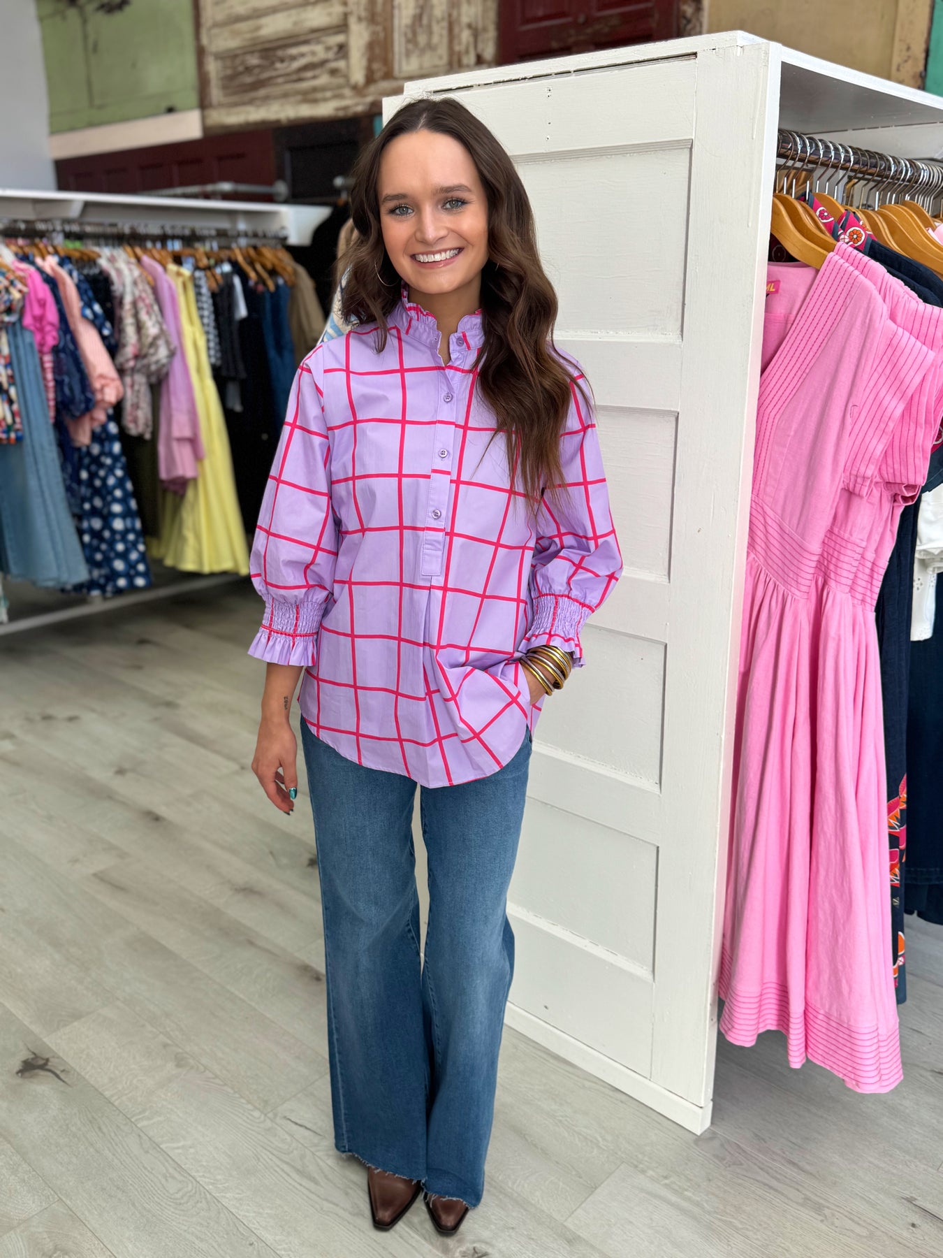 Kimberly Park Top Lavender and Red