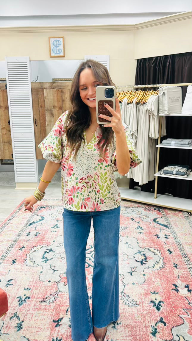 Puff Sleeve Floral Pattern Top