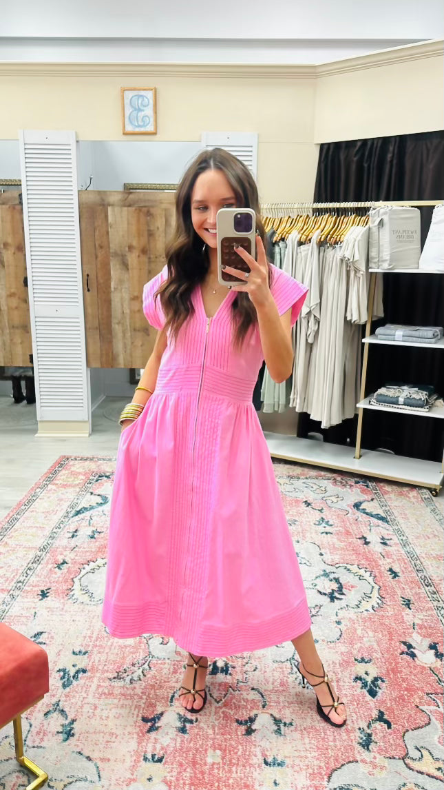 Short Sleeve Zipper Up Dress