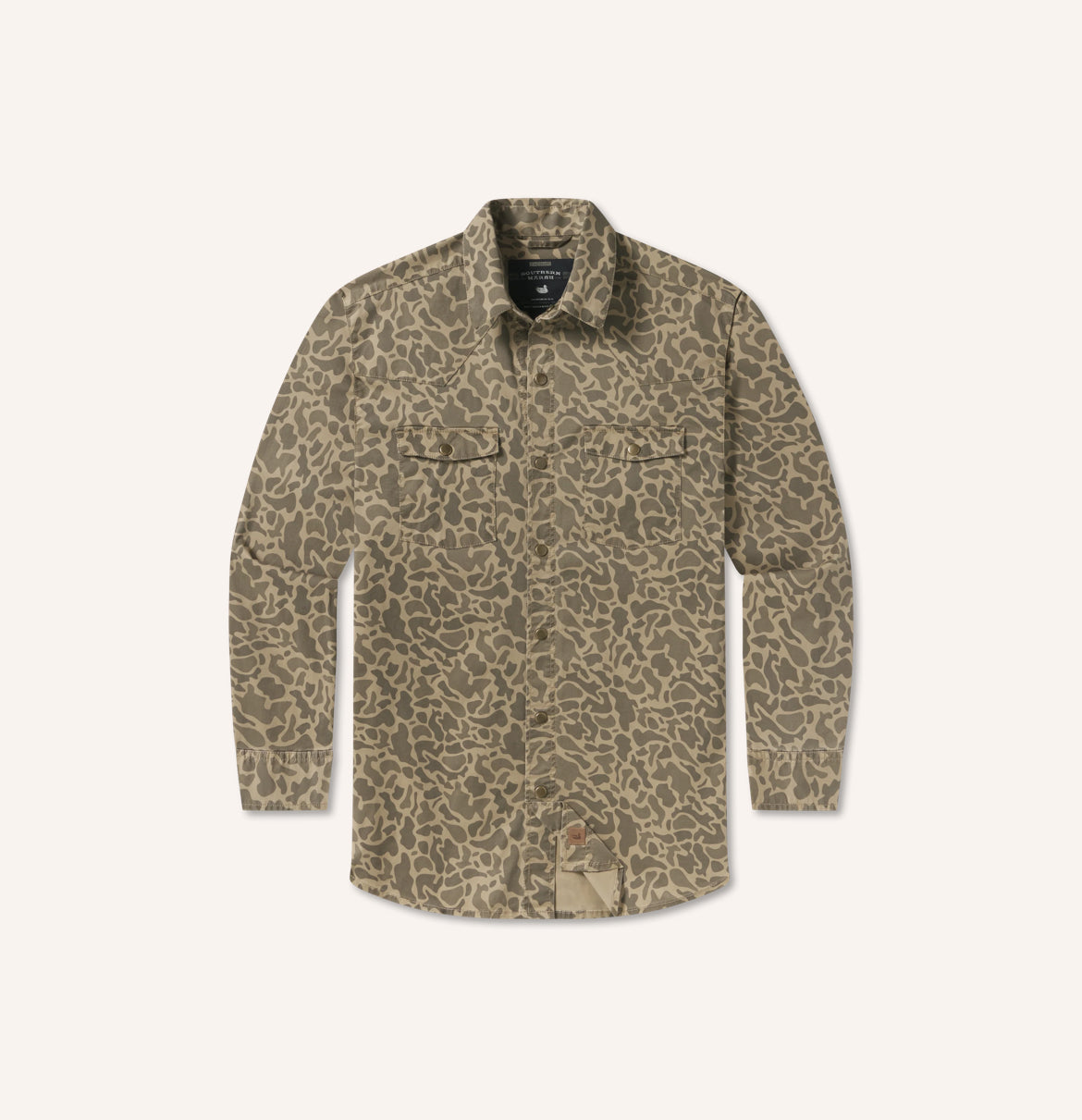 Inspired by the outdoors and featuring an all over camo print, our El Campo Performance Ranch Shirt is crafted from a sturdy, durable fabric and boasts 2 handy chest pockets. Designed for a comfortable fit throughout the day, this shirt is best paired with our Regatta Stretch Chino or Cahaba Comfort Stretch Twill Pants.