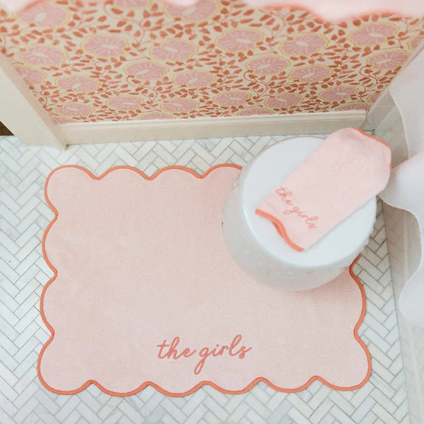 Ballet Pink Scalloped Bath Mat | Coral Piping