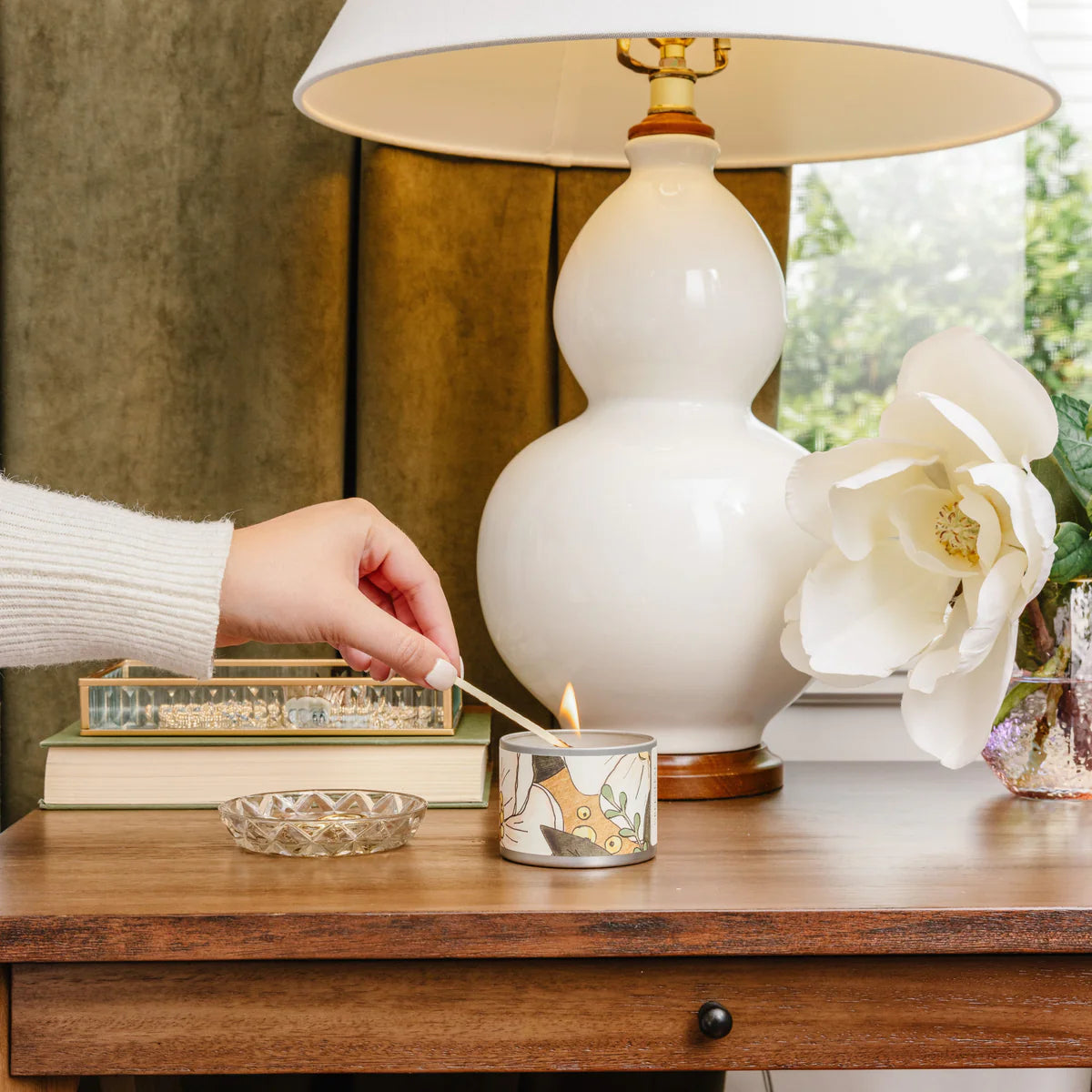 Wrapped in charming hand-painted patterns, our 4 oz Tin Candle adds a touch of style wherever it goes. Perfectly portable and travel-ready, it’s an easy way to enjoy your favorite Greenleaf fragrance on the go or in smaller spaces