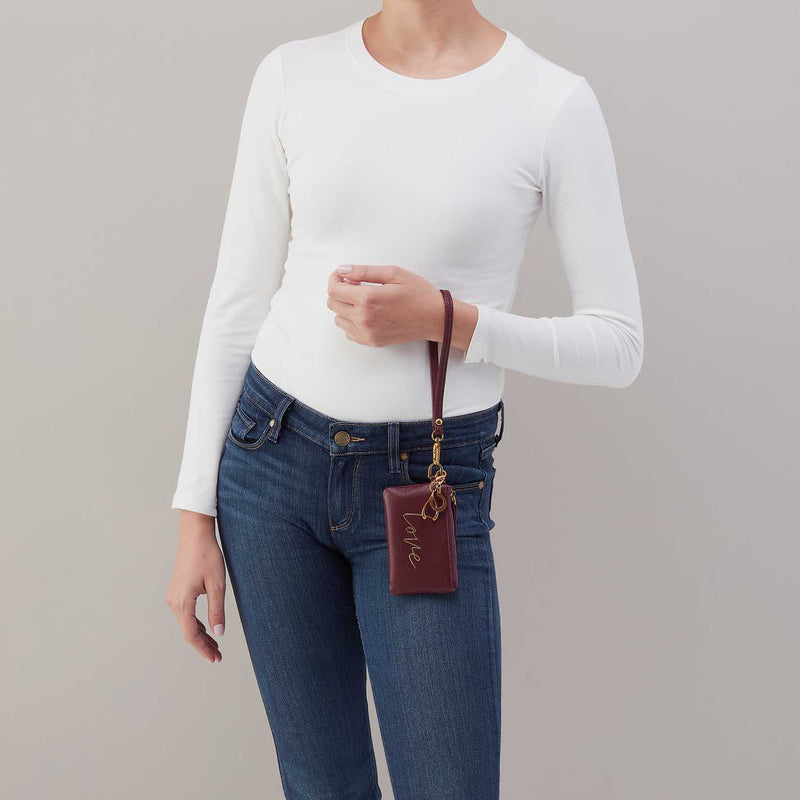 This gift set includes a small zip pouch with removable wristlet and charms, in a custom box display.